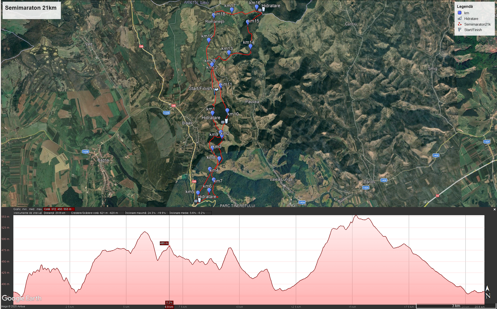 – 21 km – traseu destinat avansaților, cu experiență competițională și fizică, având o diferență de nivel cumulată de 570 m.
