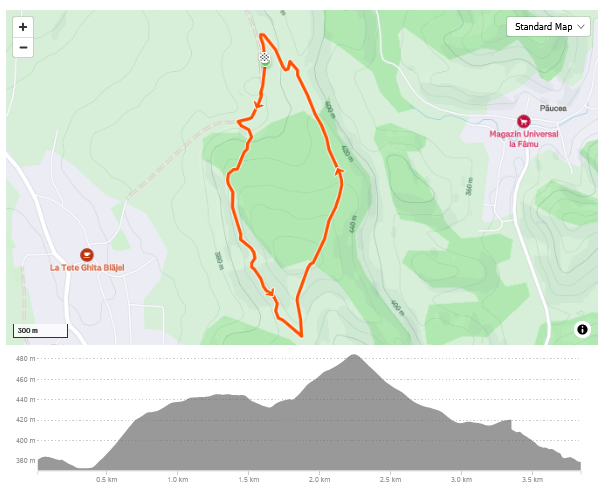 – 4 km – dificultate redusă, recomandat începătorilor, cu o diferență de nivel cumulată de 135 m.